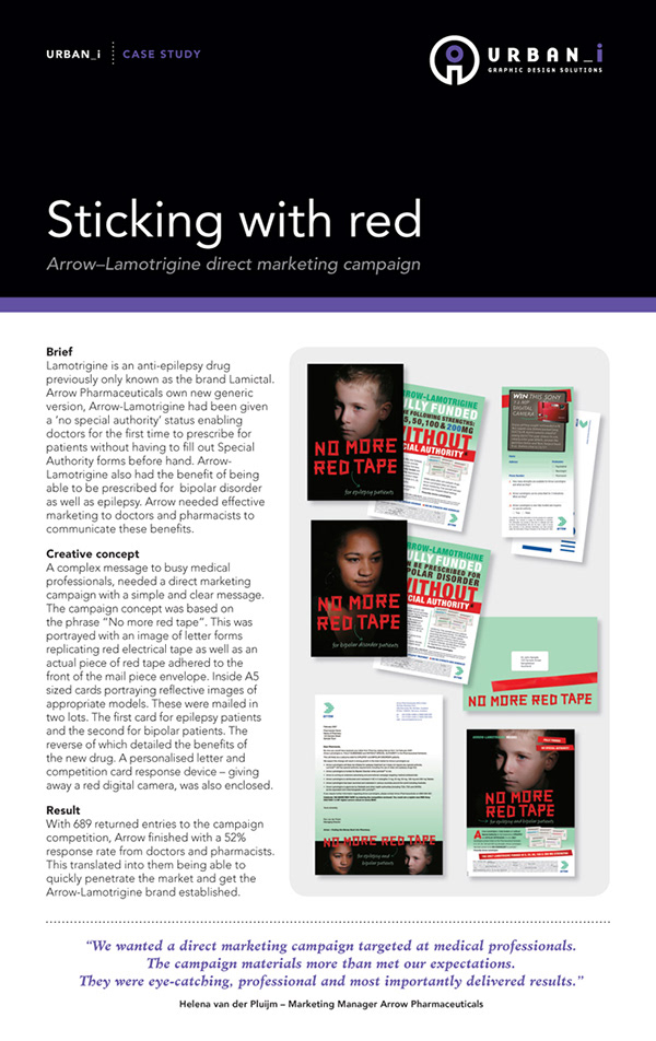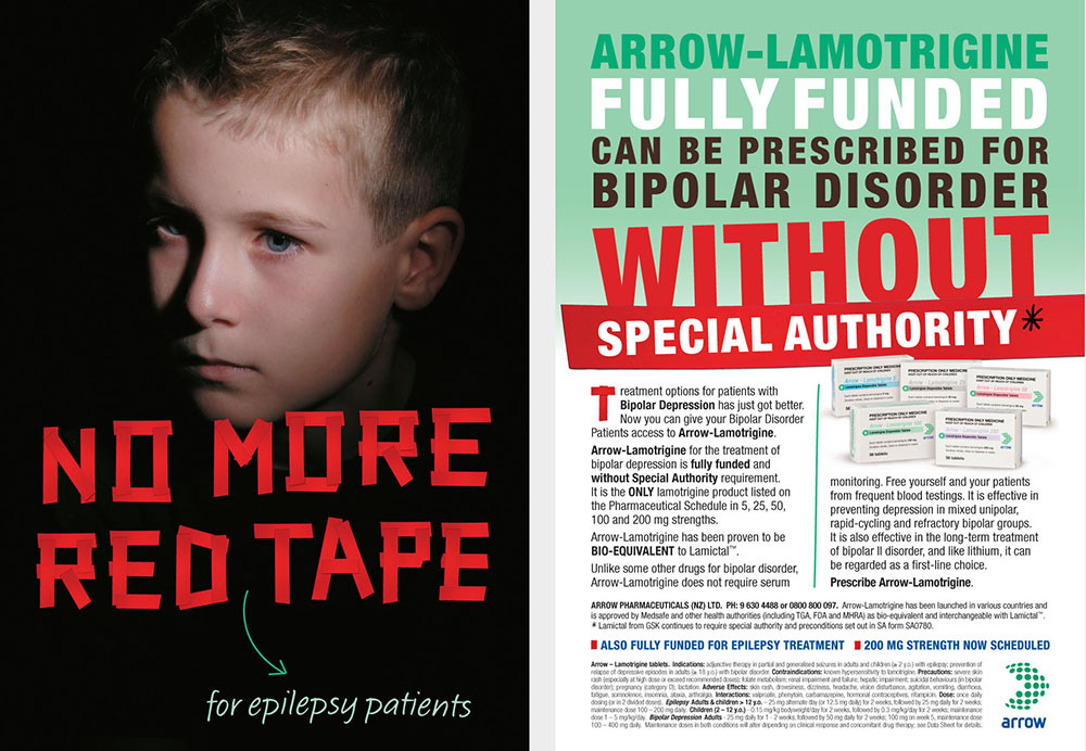 Arrow-Lamotrigine is a drug used to treat Epilepsy and Bipolar disorder. This DM campaign and trade magazine advertising formed part of a successful launch of the product to prescribing Doctors and Psychiatrists.