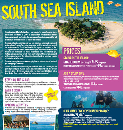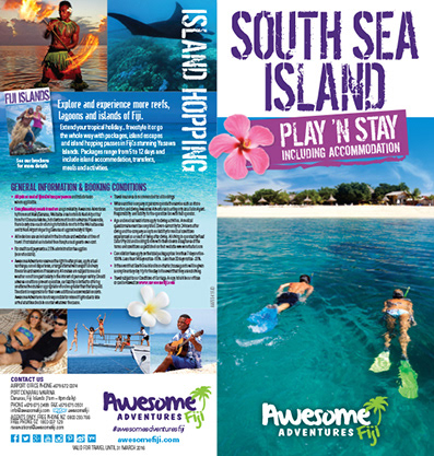 Marketing material for Awesome Adventures Fiji, Port Denarau, Fiji