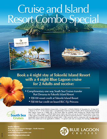 Marketing material for Blue Lagoon Cruises, Port Denarau, Fiji
