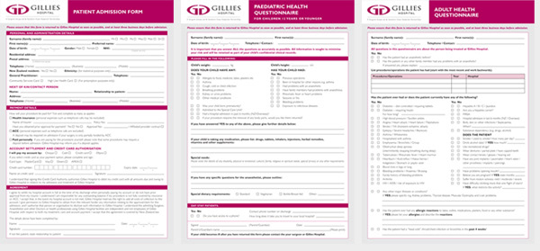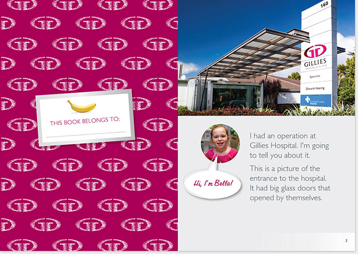 Branding plus, admission folders and forms for Giliies Hospital. A storybook was also produced for young patients at Gillies Hospital to prepare them for admission and operation. Each child is given a small toy monkey as a special gift.