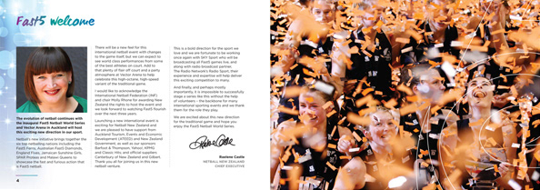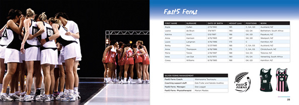 Branding for Fast 5 Ferns and Tournament Media Guide for Fast 5 Netball World Series.
