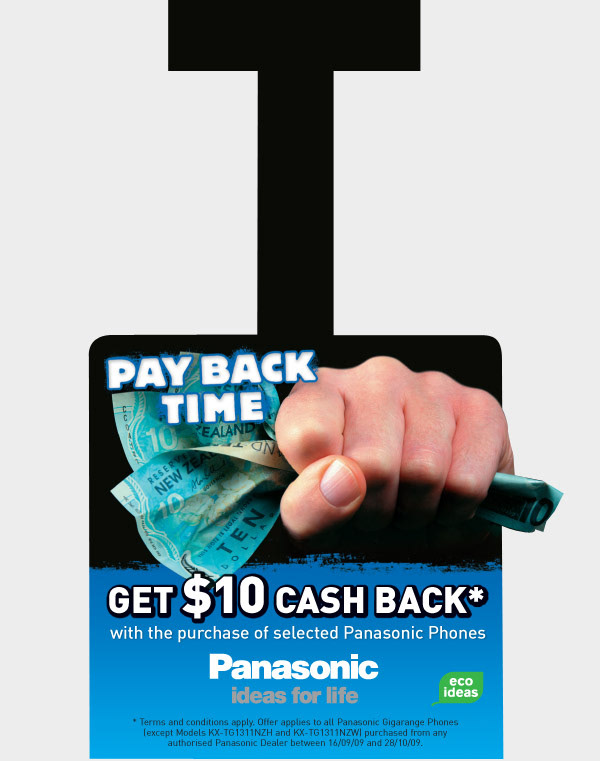 Panasonic 'Cash Back' promotion redemption pad, wobbler, shelf strip and presenter.
