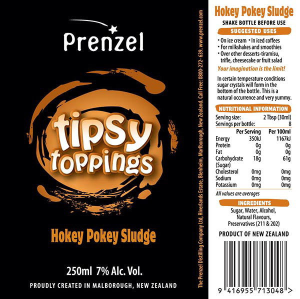'Tipsy Toppings' alcoholic dessert sauce labels