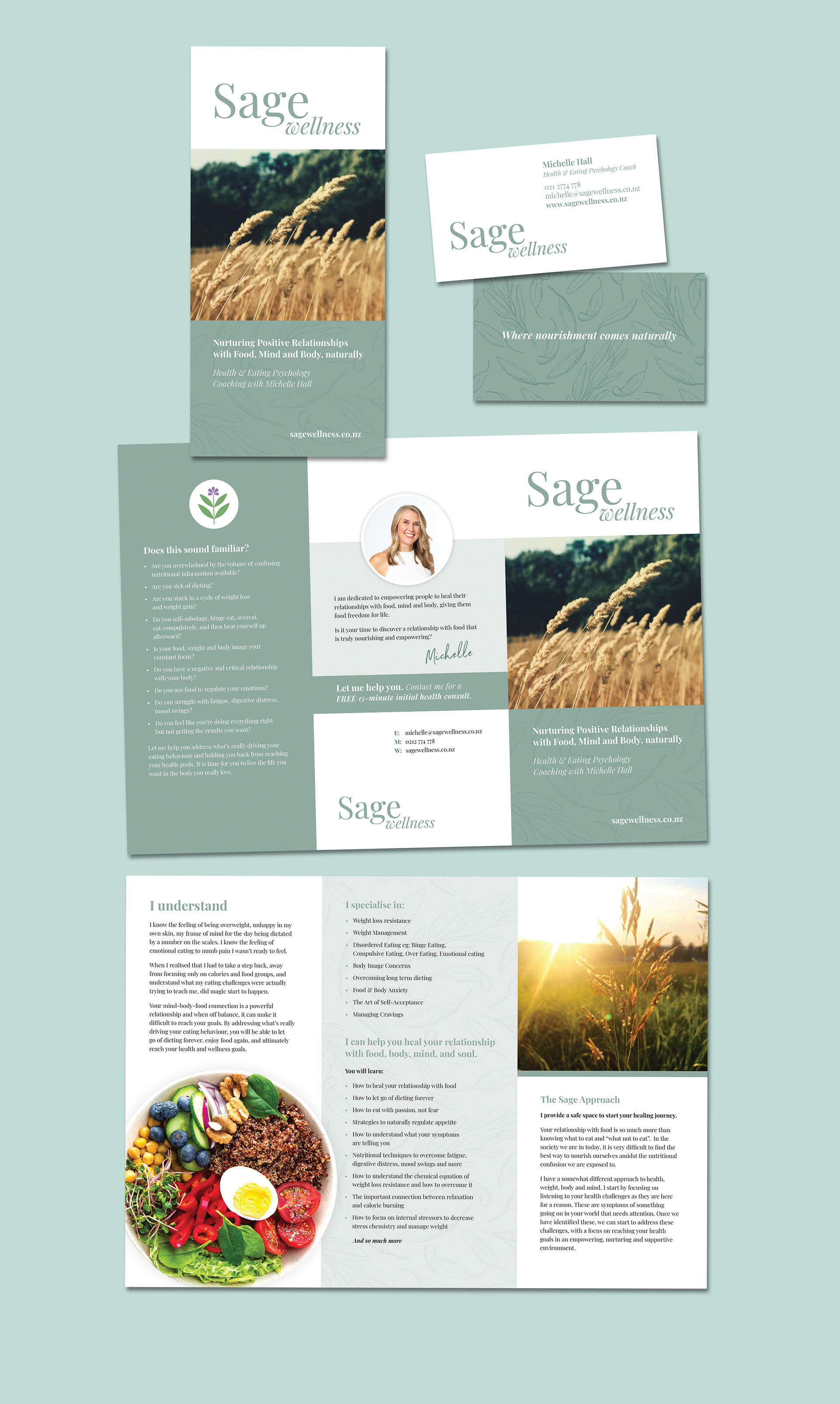 Branding, brochure, business card and website for a Nutrition and Eating Psychology coach